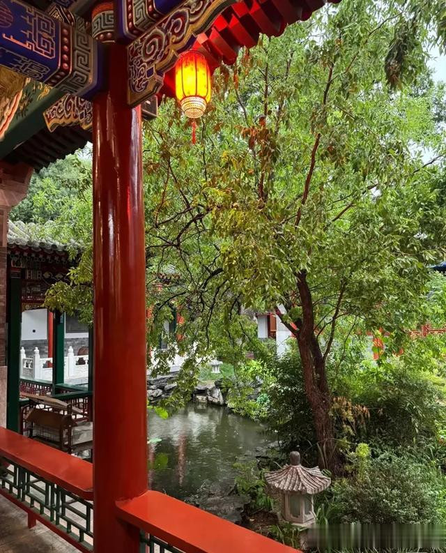 照片中,这个小院古色古香的,一看就是古装剧里会出现的那种,上面还挂了一个灯笼,更增添了几分氛围感。